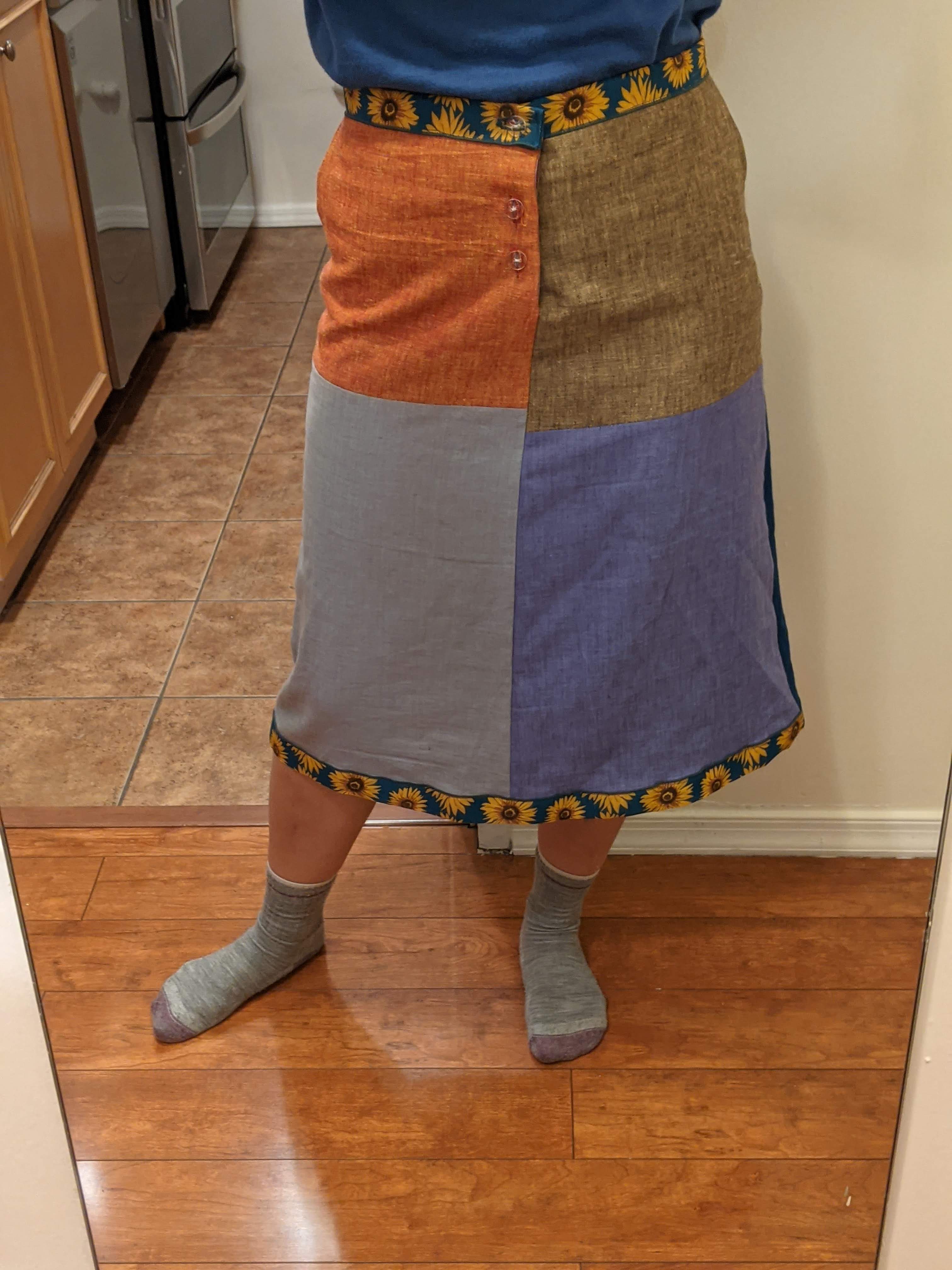 almost exactly 1 yr later, fixed a skirt that was maddeningly too small (couldn't even zip it up all the way). fix was a bit hacky and forgot to leave enough room above zipper top for hook-and-eye closure. oops